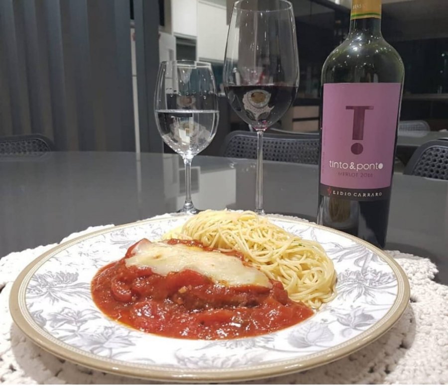 A harmonização foi excelente pois a acidez atingiu o ponto necessário para deixar o vinho gastronômico, quebrando a untuosidade do queijo e da manteiga usada na preparação do espaquete. Para finalizar o corpo do vinho acompanhou o peso do prato.